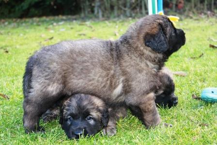 Die Eltern: Prinz-Poldi v. Roßbach und Caecilia Löwe aus Kurpfalz Der Vater unseres aktuellen Wurfes entstammt einer seit dem Jahr 1930 existierenden Zuchtstätte unmittelbar aus der Heimat des Leonbergers, die seit jeher auf ursprüngliche, langlebige und gesunde Leonberger-Hunde gezüchtet hat. Prinz-Poldi ist HD-frei und hat die Körung ohne Zuchtauflagen absolviert. Auf Ausstellungen präsentiert er sich stets als ein "vorzüglicher" Vertreter seiner Rasse. Er landet meist in Schönheitswettbewerben auf den vordersten Rängen (Jugendsieger Baden-Württemberg 2007, Jugendsieger Saarland 2007, Österreichischer Jugendsieger 2007, Ortenau-Sieger 2010) und wird dafür oft mit einem Pokal belohnt. Sein ausgeglichenes Wesen und seine souveräne Ausstrahlung sind beispielhaft.