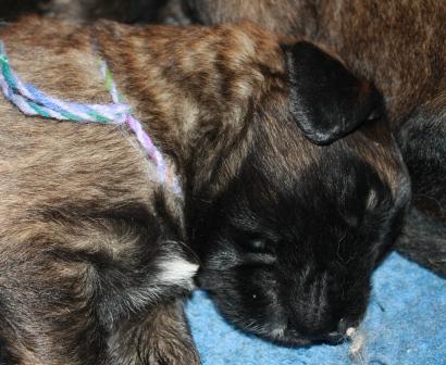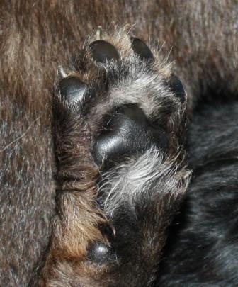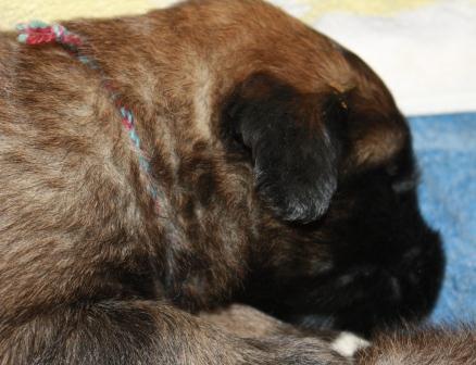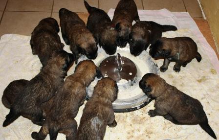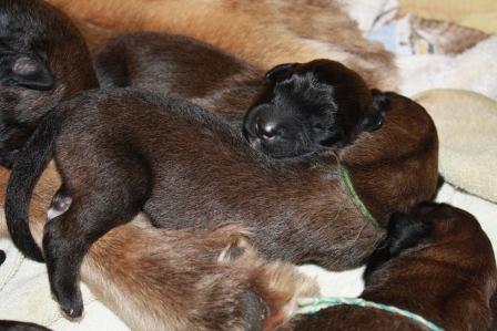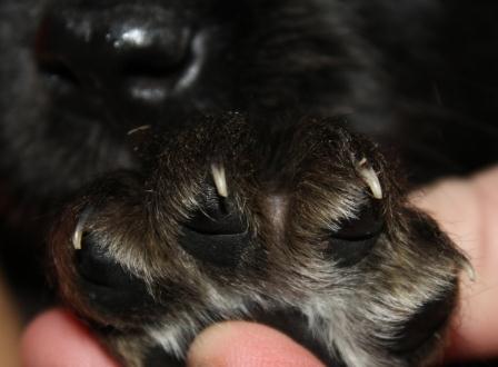 13.03.2012: Durch den Milchtritt mit den scharfen Krallen an den Pfoten und die spitzen Zähne werden die Zitzen der Mutterhündin extrem beansprucht.