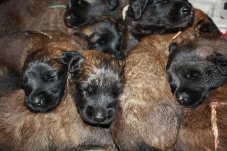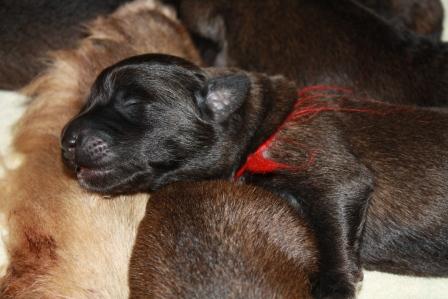 Unser Wurf ist heute eine Woche alt. Cilli und alle ihre Welpen sind gesund und wohlauf. Die ersten Welpen bringen bereits mehr als ein Kilo auf die Waage.