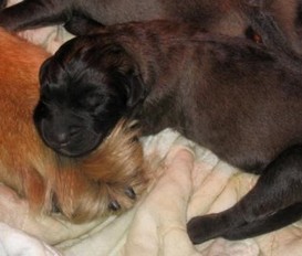 Welpen in der ersten Lebenswoche, etwa 1 kg schwer