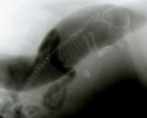 Röntgenaufnahme wenige Minuten vor der Geburt... und einige Stunden später