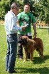 Nachdem alle Hunde eines Wurfes einzeln beurteilt sind, wird noch einmal der gesamte Wurf in den Ring gerufen, und der Richter gibt seine Gesamteinschätzung mündlich ab.